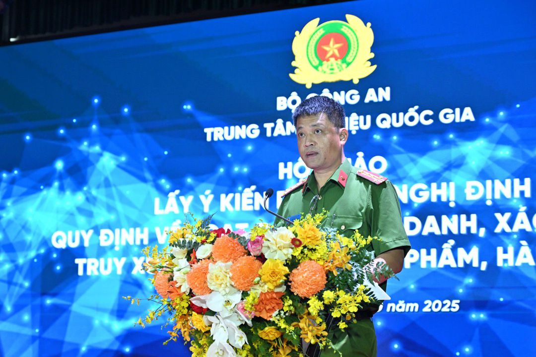 Sáng ngày 01/10/2025, tại Hà Nội, Trung tâm dữ liệu quốc gia, Bộ Công an tổ chức Hội thảo Lấy ý kiến dự thảo Nghị định quy định về hoạt động định danh, xác thực và truy xuất nguồn gốc sản phẩm, hàng hóa (Nghị định). Thiếu tướng Nguyễn Ngọc Cương, Giám đốc Trung tâm dữ liệu quốc gia chủ trì Hội thảo.